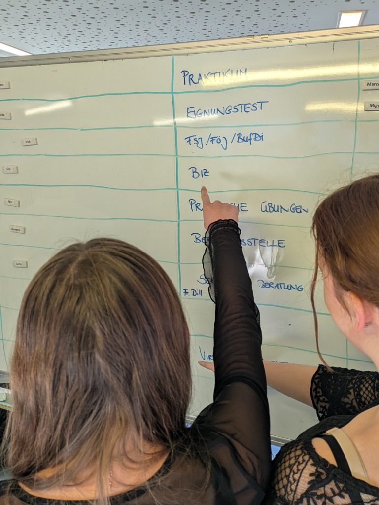 Im Vorfeld des Messebesuchs hatte sich die Klasse intensiv vorbereitet: Im Unterricht wurden Interessen und Stärken reflektiert, passende Aussteller recherchiert und Gesprächstermine mit verschiedenen Ausbildungsbetrieben, Schulen und Institutionen vereinbart. So gingen die Schülerinnen und Schüler gut vorbereitet in den Austausch mit den Unternehmensvertreterinnen und -vertretern.