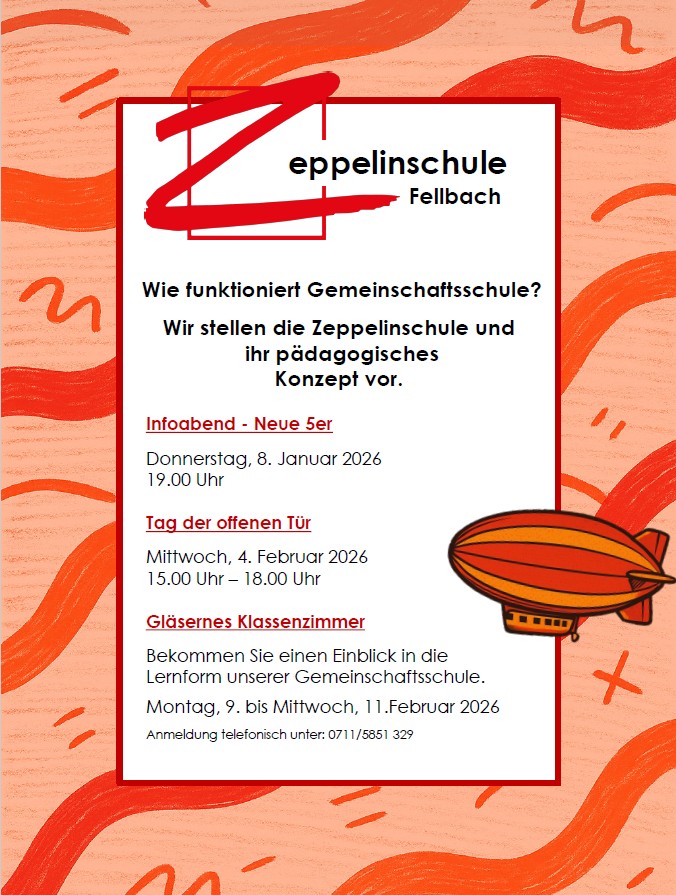 Wir wünschen allen Schülerinnen und Schülern der Zeppelinschule einen guten Start ins neue Schuljahr!