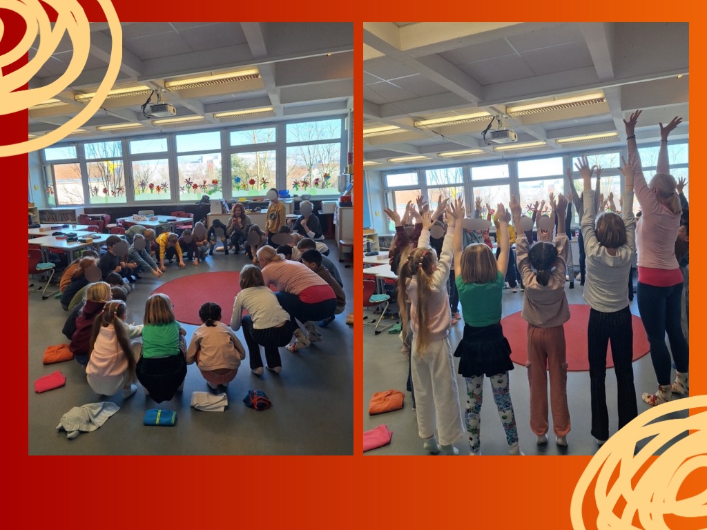 Nach den Faschingsferien stand die Fußgesundheit im Mittelpunkt. Höhepunkt war eine gemeinsame Fußyoga-Einheit für Schülerinnen, Schüler und Lehrkräfte unter Anleitung einer ausgebildeten Kinderyogalehrerin. Die Kinder lernten einfache Übungen kennen, die sich gut in Unterricht und Frühsport integrieren lassen.